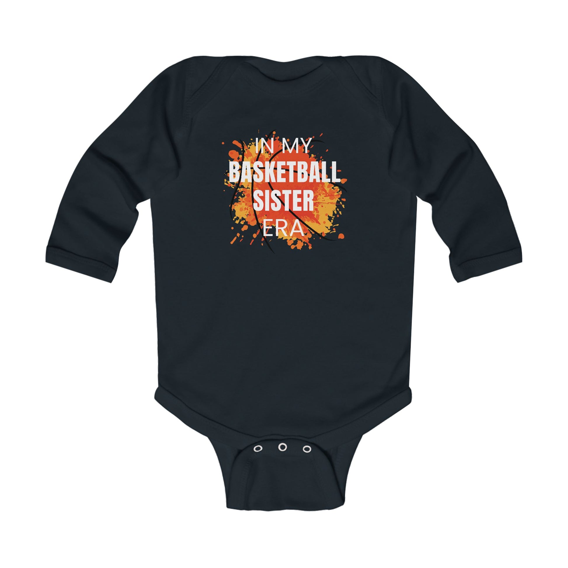 Even the tiniest members of the basketball family can join the fun with the "In My Basketball Sister Era" long sleeve onesie! . Soft, cozy, and game-day ready, it’s perfect for naps, tummy time, or being passed around while cheering on their favorite baller.