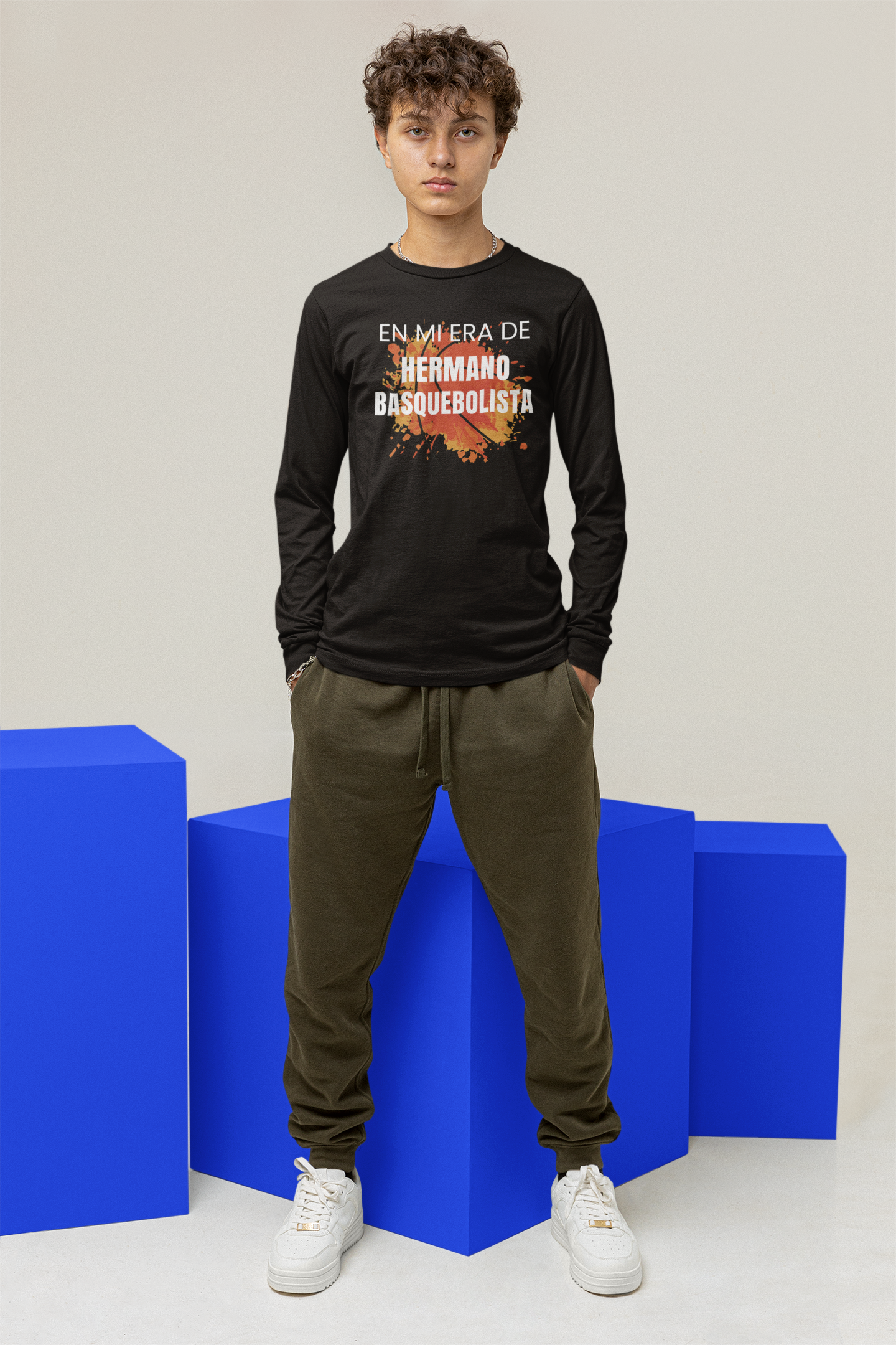 ¡Deja que tu joven jugador o su fan número uno muestre con orgullo su camino en el básquet con la camiseta de manga larga “En mi era de hermano basquebolista”! Ya sea “Jugador,” “Fan,” o cualquier rol especial, esta camiseta es perfecta para días de partido, prácticas o para demostrar su amor por el juego todos los días. Suave, cómoda y lista para acompañarlos en cada jugada.